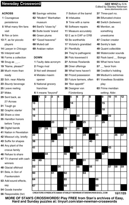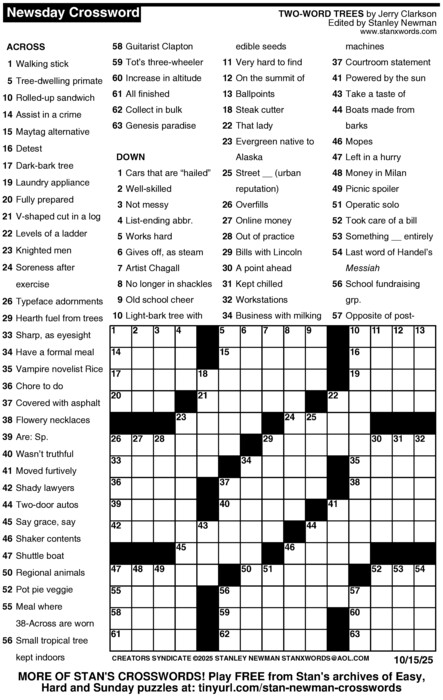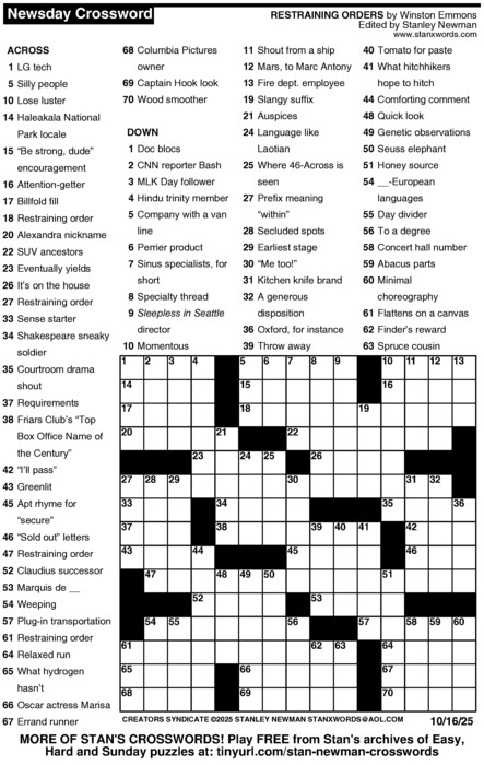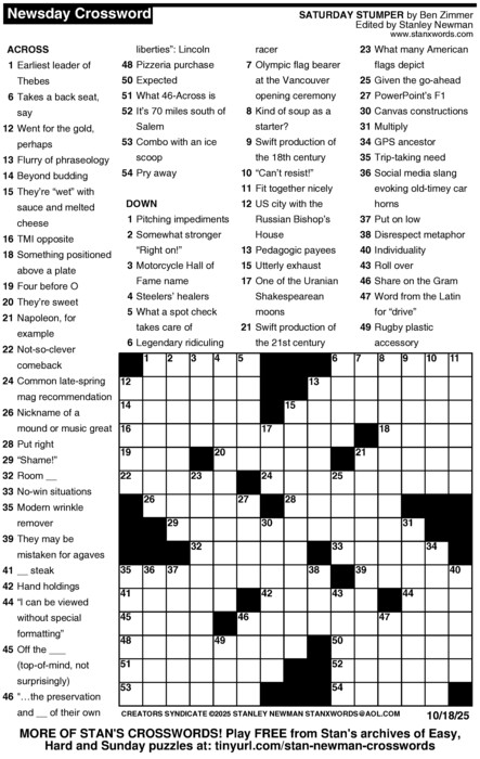 Stan Newman crafts a fresh and challenging puzzle every day of the week! Stay sharp and challenge yourself to solve each and every one.